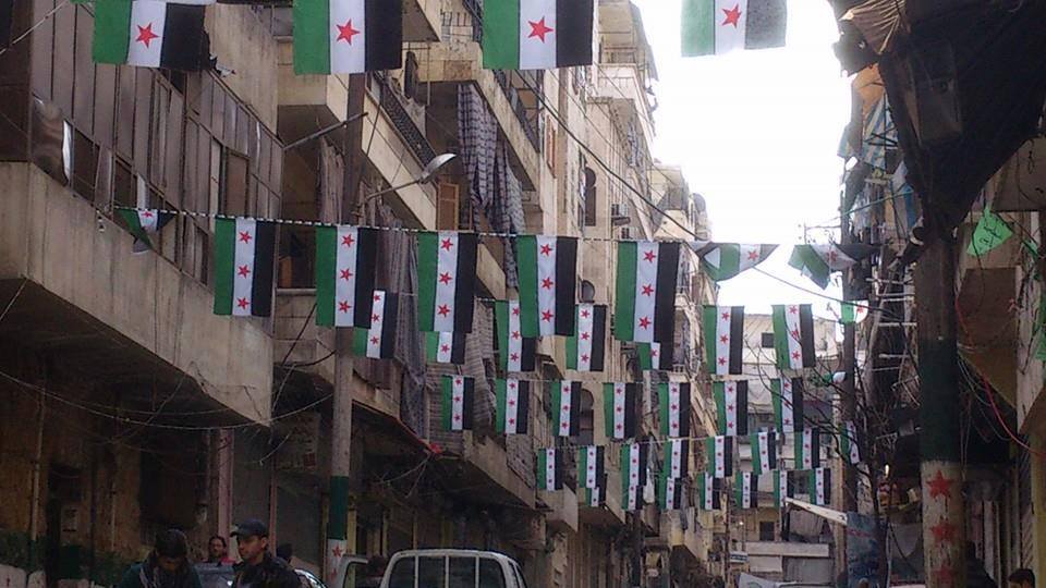اختفت أعلام الكتائب والتحزّبات من احتفالية ذكرى الثورة في حلب، وارتفع علم واحد ليؤكد على الهوية السورية الجامعة للثورة السورية. كتبت سابقاً عن علم الثورة وتاريخه وما يرمز له من وحدة ونضال (هنا) وأن التقديس ليس للعلم، ولكن المبادئ التي يرمز لها هذا العلم والتضحيات التي بُذلت تحته هي ما تجعل له مكاناً خاصاً في القلب والفكر.